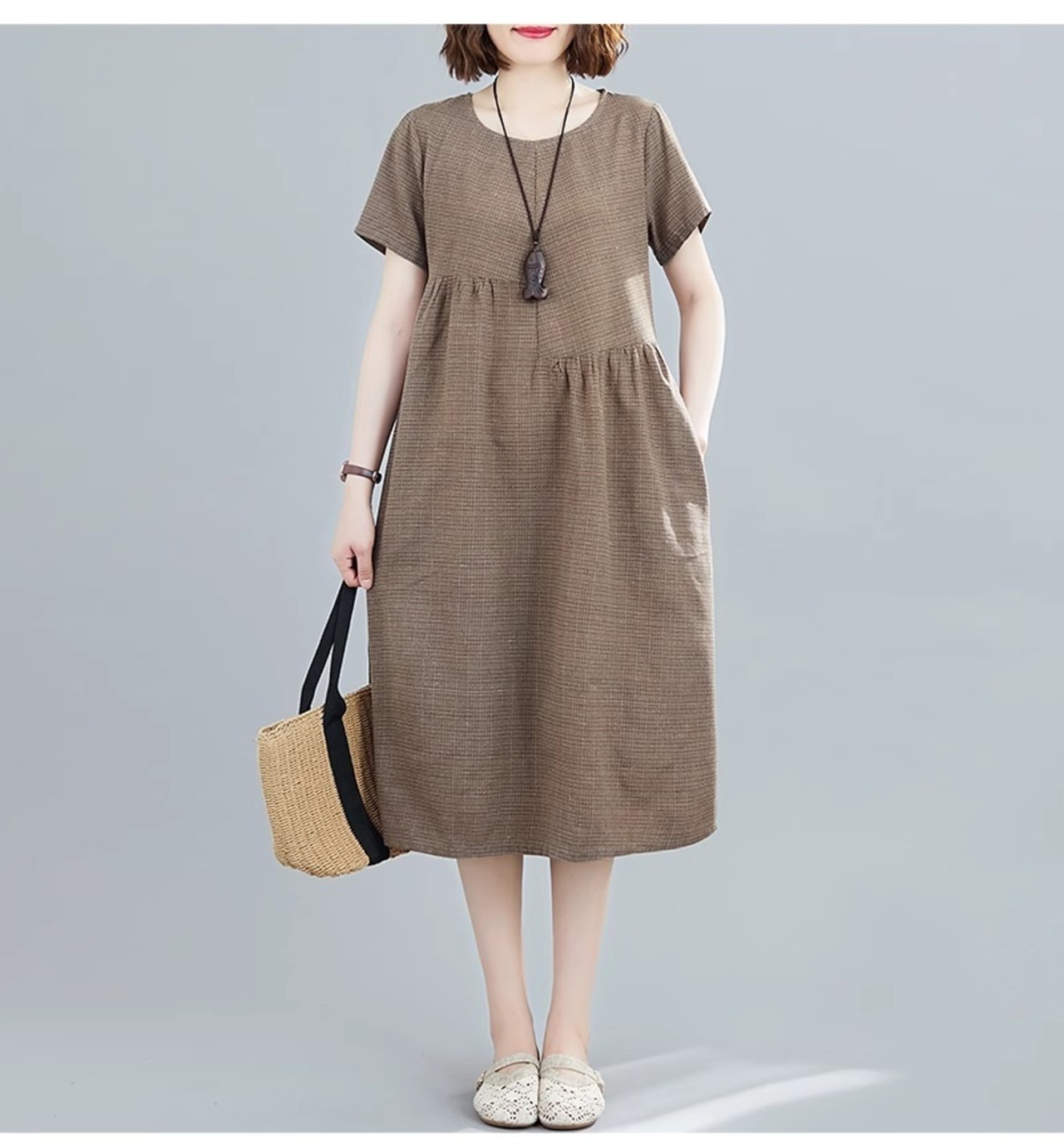 ワンピース 膝丈 ひざ丈 膝下 袖あり 半袖 Uネック ラウンドネック かわいい 大人可愛い きれいめ シンプル カジュアル 大人 上品 おしゃれ お洒落 かっこいい ラフ 抜け感 美容師 メイクアップアーティスト ネイリスト アパレルスタッフ 美容部員 エステティシャン コーディネーター 通訳 事務職 総合職 システムエンジニア マーケター OL チェック柄 春 夏 10代 20代 30代 40代 50代 レディース 普段使い 楽ちん 赤 レッド 青 ブルー 茶色 ブラウン