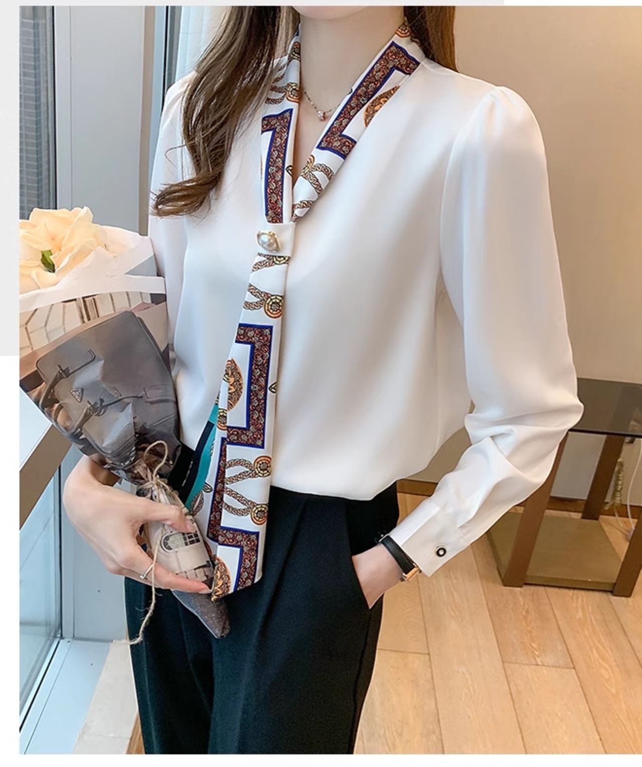 トップス ブラウス 白シャツ 白トップス 袖あり 長袖 Vネック 大人可愛い きれいめ 大人 上品 おしゃれ お洒落 大人可愛い 大人女子 こなれ感 クール モード系 モダン 主役級 存在感 美容師 メイクアップアーティスト ネイリスト アパレルスタッフ 美容部員 エステティシャン コーディネーター 通訳 事務職 総合職 システムエンジニア マーケター OL プリント 春 夏 秋 20代 30代 40代 50代 レディース 女性用 ビジネス 通勤 白 ホワイト 緑 グリーン