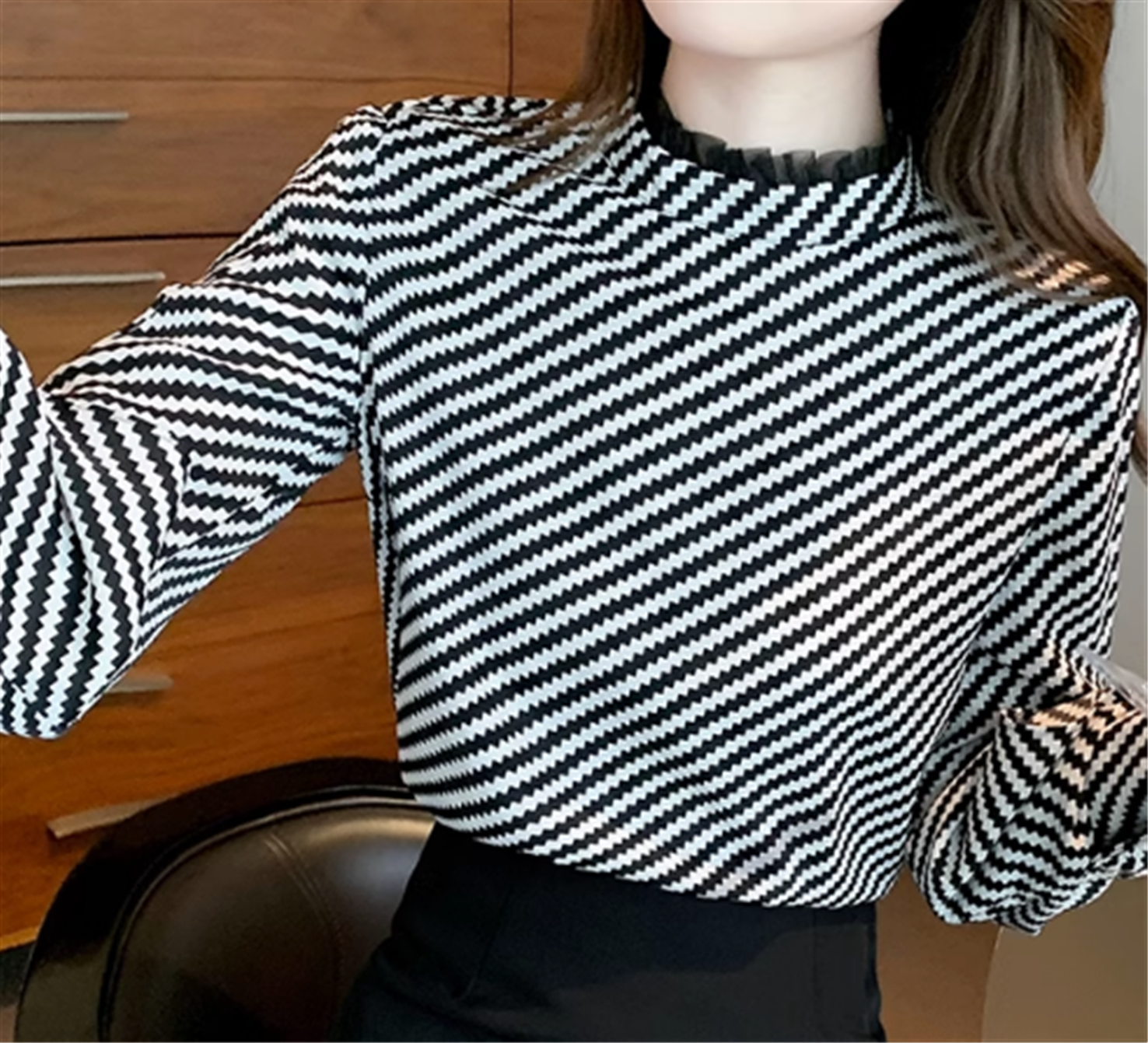 トップス シャツ ブラウス プルオーバー 長袖 肌見せ ランタンスリーブ スタンドカラー フリル ストライプ 大人可愛い きれいめ シンプル 上品 エレガント 主役級 春 秋 10代 20代 30代 レディース ママ 学生 デート お出かけ 着回し 定番 モテ インスタ映え 美容師 メイクアップアーティスト ネイリスト アパレルスタッフ 美容部員 エステティシャン コーディネーター 通訳 事務職 総合職 システムエンジニア マーケター OL フリーランス S M L XL 2XL ブラック ホワイト