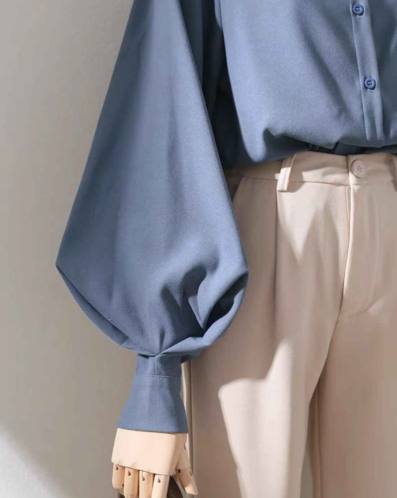 トップス シャツ ブラウス 白シャツ 白トップス 袖あり 長袖 ボリューム袖 パフスリーブ 襟付き スタンドカラー 大人可愛い きれいめ シンプル 大人 上品 おしゃれ お洒落 かっこいい 大人可愛い 大人女子 こなれ感 クール エレガント 抜け感 美容師 メイクアップアーティスト ネイリスト アパレルスタッフ 美容部員 エステティシャン コーディネーター 通訳 事務職 総合職 システムエンジニア マーケター OL ビジネス 白 ホワイト 黒 ブラック 青 ブルー ベージュ