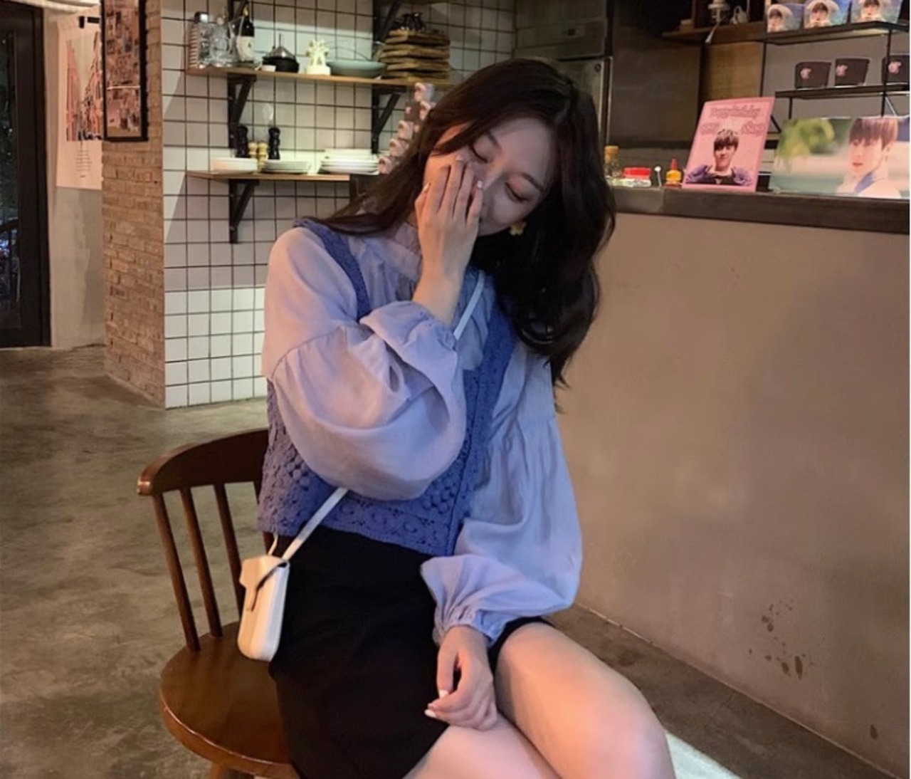 ニットベストとガーリーなブラウスのセットです。