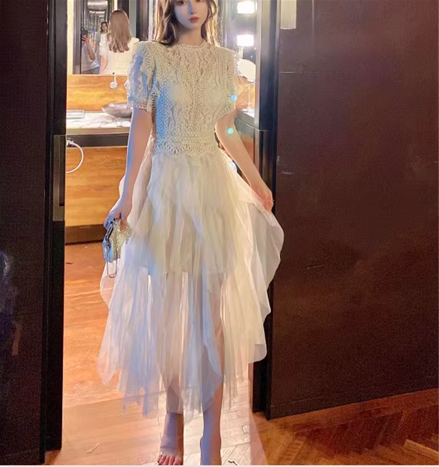 ワンピース プリンセスドレス チュチュ タイト ミモレ丈 半袖 ラウンドネック 刺繍 透け感 大人可愛い きれいめ 華やか 上品 お洒落 大人女子 こなれ感 エレガント 主役級 存在感 春 夏 10代 20代 30代 レディース 学生 デート パーティー イベント モテ 脚長 インスタ映え 美容師 メイクアップアーティスト ネイリスト アパレルスタッフ 美容部員 エステティシャン コーディネーター 通訳 事務職 総合職 システムエンジニア マーケター OL フリーランス S M L ホワイト ブルー