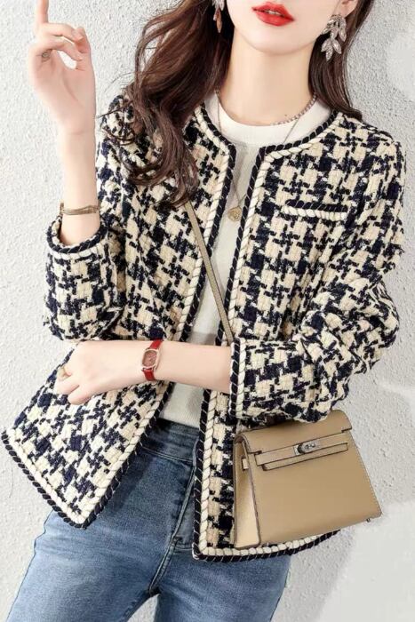 大人可愛い千鳥柄のツイードジャケット。ミディアム丈で袖ありのデザインは、上品で女性らしい雰囲気を演出します。シンプルできれいめなデザインなので、ビジネスやフォーマルな場でも活躍します。ポケット付きで機能的でありながら、きちんと感もあるので、通勤やお出かけにもぴったりです。美容師やメイクアップアーティスト、ネイリスト、アパレルスタッフ、美容部員、エステティシャンなど、様々な職業の方にもおすすめ。Sサイズから2XLまでのサイズ展開で、幅広いお客様に対応しています。おしゃれな大人女子にぴったりの一枚です。春から秋まで活躍するアウターとして、ぜひお持ちください。