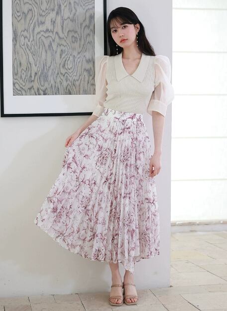 おしゃれでかわいいフレアスカートが登場しました!ハイウエストでウエストゴム仕様なので、誰でも簡単にスタイルアップが叶います。フレンチトーストのようなプリーツが可愛らしさを演出し、花柄デザインで女子力もアップ!さらに、ロングシーズン着回しできるアイテムなので、一枚持っていると大活躍間違いなしです。