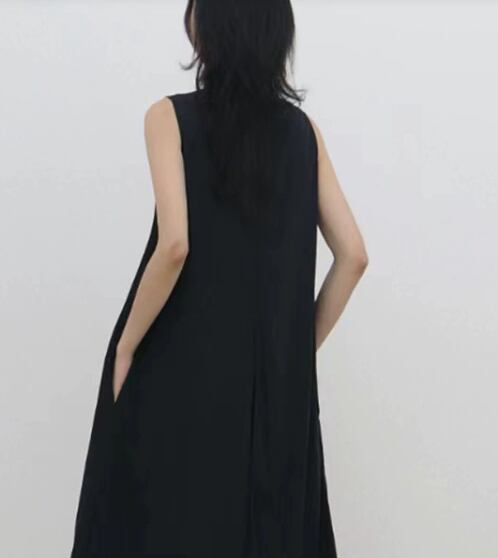 着るだけでこなれ感が漂う、ブラックの袖なしミモレ丈ワンピースです。シンプルながらも個性的なデザインで、カジュアルからフォーマルまで幅広いシーンで活躍します。無地のデザインなので、重ね着やアクセサリー次第で様々なスタイルにアレンジ可能。ボーイッシュなメンズライクファッションから、ラブリーなガーリースタイルまで、あなたの個性を引き立てます。さらに、素材には快適な着心地を重視しており、ストレッチ性のある素材で動きやすさも抜群。シンプルでありながら存在感のある一枚をお求めの方にオススメです。S、M、Lの3サイズ展開で、ゆったりとした着心地にも配慮しています。自信を持っておしゃれを楽しむ女性のために、ぜひこのワンピースをお試しください。