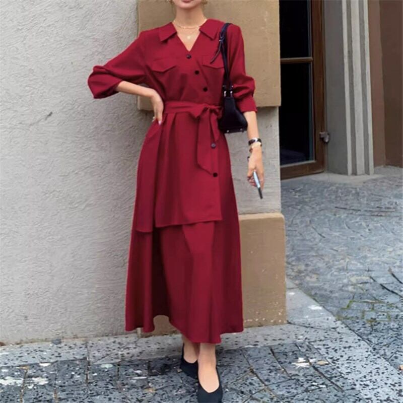 ドレス ミモレ丈ドレス ミモレ 袖あり 長袖 POLO襟 かわいい きれいめ シンプル 大人 上品 おしゃれ かっこいい 大人 おしゃれ 無地 20代 30代 レディース パーティー イベント 美容師 メイクアップアーティスト ネイリスト アパレルスタッフ 美容部員 エステティシャン コーディネーター 通訳 事務職 総合職 システムエンジニア マーケター OL フリーランス コーデ スタイル 秋 お呼ばれ M L XL 2XL 3XL 4XL ブラック レッド