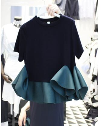 シンプルでありながらも、個性的な切替えデザインが目を引くフリルチュニック。へプラムデザインのアクセントが女性らしさを際立たせます。半袖でありながらも、肩や腕のカバーもしっかりとしているので、気になる部分をカバーしながらも、爽やかな印象を与えることができます。
