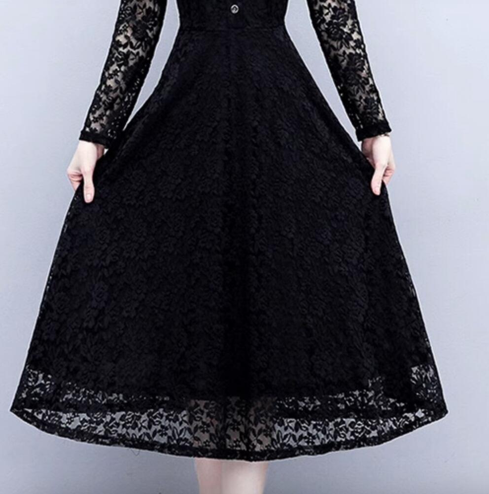 ワンピース ミモレ丈 長袖 レース かわいい 大人可愛い きれいめ シンプル カジュアル 大人 上品 おしゃれ お洒落 大人女子 こなれ感 個性的 主役級 存在感 美容師 メイクアップアーティスト ネイリスト アパレルスタッフ 美容部員 エステティシャン コーディネーター 通訳 事務職 総合職 システムエンジニア マーケター フリーランス 春 秋 10代 20代 30代 レディース OL デート お出かけ 女子会 休日 旅行 ショッピング 着回し 普段使い ファッション コーデ スタイル ブラック