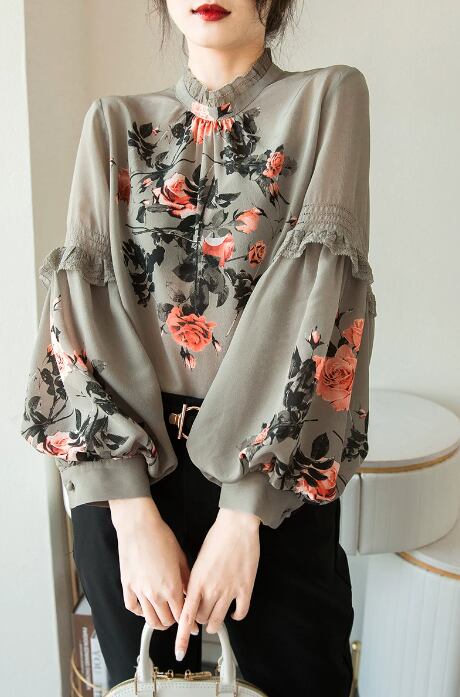 トップス ブラウス 長袖 ハイネック フリル シースルー かわいい 大人可愛い きれいめ シンプル 大人 上品 おしゃれ 大人女子 OL 花柄 春 秋 20代 30代 40代 レディース 女性用 通勤 学生 通学 デート お出かけ 女子会 パーティー リゾート 着回し 普段使い グレー S M L XL 2XL 3XL 美容師 メイクアップアーティスト ネイリスト アパレルスタッフ 美容部員 エステティシャン コーディネーター 通訳 事務職 総合職 システムエンジニア マーケター