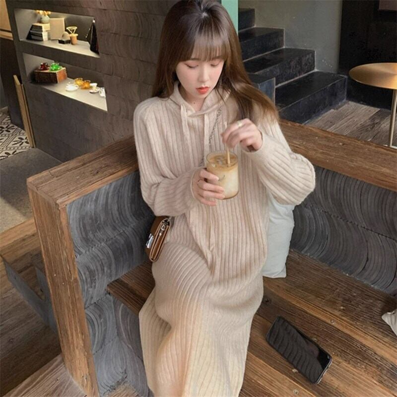 ワンピース ニットソー セーター ロングスカート ロング ロング丈 袖あり 長袖 フード付き ゆったりウエスト かわいい 大人可愛い きれいめ シンプル カジュアル かっこいい 大人女子 甘い 無地 秋 冬 20代 30代 レディース ビジネス OL デート 女子会 美容師 メイクアップアーティスト ネイリスト アパレルスタッフ 美容部員 エステティシャン コーディネーター 通訳 事務職 総合職 システムエンジニア マーケター OL フリーランス 韓国 ファッション コーデ S M L XL 2XL
