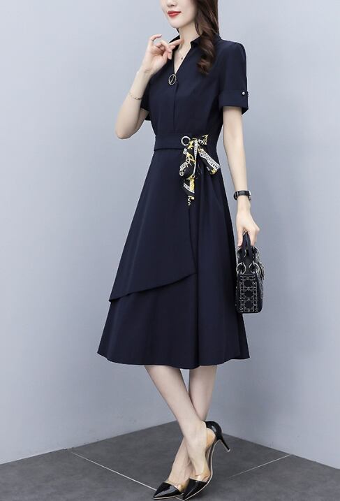ワンピース 袖あり 半袖 襟付き ウエストマーク かわいい 大人可愛い きれいめ シンプル 大人 上品 おしゃれ 大人女子 エレガント OL 無地 春 秋 20代 30代 40代 レディース 女性用 通勤 学生 通学 デート お出かけ 普段使い モテ ネイビー M L XL 2XL 3XL 4XL 美容師 メイクアップアーティスト ネイリスト アパレルスタッフ 美容部員 エステティシャン コーディネーター 通訳 事務職 総合職 システムエンジニア マーケター OL フリーランス