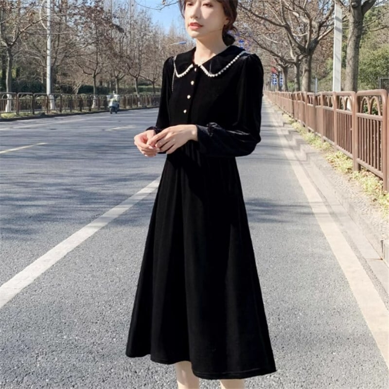 ワンピース ロングスカート ロング ロング丈 ロングワンピース 黒ワンピース 袖あり 長袖 POLO襟 レギュラー ハイウエスト かわいい 大人可愛い きれいめ 春 秋 20代 30代 レディース ビジネス OL デート お出かけ 女子会 ショッピング 美容師 メイクアップアーティスト ネイリスト アパレルスタッフ 美容部員 エステティシャン コーディネーター 通訳 事務職 総合職 システムエンジニア マーケター OL フリーランス 韓国 ファッション コーデ S M L XL 2XL ブラック 黒