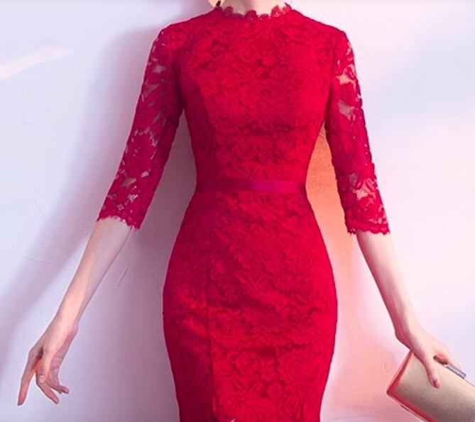 ドレス ワンピドレス ミモレ ミモレ丈 7分袖 七分袖 ハイネック レース かわいい 大人可愛い きれいめ 上品 美容師 メイクアップアーティスト ネイリスト アパレルスタッフ 美容部員 エステティシャン コーディネーター 通訳 事務職 総合職 システムエンジニア マーケター OL 花柄 春 秋 謝恩会 結婚式 20代 30代 レディース 女性用 デート お出かけ パーティー S M L XL 2XL 3XL 紅色 赤 レッド 緑 グリーン 白 ホワイト グレー 黒 ブラック