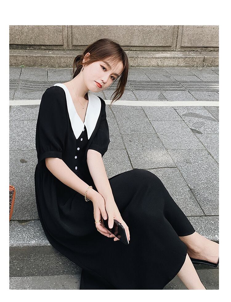 大人可愛いデートワンピース。ビッグカラーとミモレ丈が特徴です。5分袖のボリューム袖で、女性らしいフレアスリーブもポイント。Vネックと襟付きで上品さもプラスされています。シンプルでありながら、カジュアルにもきれいめにもコーディネートがしやすいアイテムです。さまざまなスタイルに合わせやすいので、オフィスやデート、パーティーなど様々なシーンで活躍してくれます。かわいらしさと大人っぽさを兼ね備えたこの一枚は、美容師、メイクアップアーティスト、ネイリスト、アパレルスタッフ、美容部員、エステティシャン、コーディネーター、通訳、事務職、総合職、システムエンジニア、マーケター、OL、フリーランスなどの女性たちにもおすすめです。自信と魅力を引き出し、自分らしいスタイルを演出してくれることでしょう。