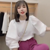 トップス デート カットソー 白トップス 袖あり 7分袖 七分袖 ボリューム袖 ホルンスリーブ ラウンドネック 襟なし セミフレア 切り替えデザイン フリル かわいい 大人可愛い きれいめ シンプル カジュアル 上品 おしゃれ お洒落 レトロ 大人女子 こなれ感 ラフ キュート ガーリー エレガント 主役級 抜け感 美容師 メイクアップアーティスト ネイリスト アパレルスタッフ 美容部員 エステティシャン コーディネーター 通訳 事務職 総合職 システムエンジニア マーケター OL フリーランス