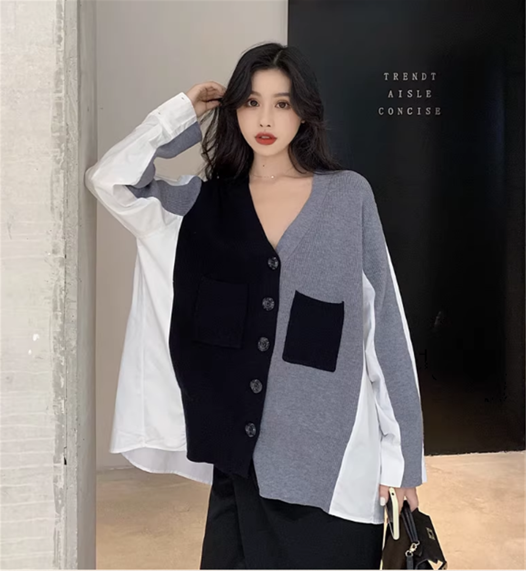 トップス シャツ ミディアム 長袖 ドロップショルダー Vネック ノーカラー 切り替えデザイン ワイド ポケット 大人可愛い カジュアル 大人女子 こなれ感 ラフ 存在感 抜け感 春 秋 10代 20代 30代 40代 レディース ママ 学生 お出かけ 体型カバー インスタ映え 美容師 メイクアップアーティスト ネイリスト アパレルスタッフ 美容部員 エステティシャン コーディネーター 通訳 事務職 総合職 システムエンジニア マーケター OL フリーランス L XL 2XL 3XL ブラック