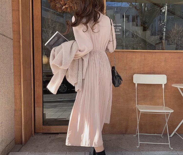 大人可愛いミモレ丈プリーツワンピースで、デートの主役になれるアイテムです。エレガントなデザインとガーリーな雰囲気が相まって、女性らしい魅力を引き出してくれます。デートやパーティー、おしゃれなお出かけにぴったりの一着です。