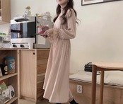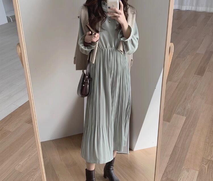 ワンピース デート コート 上着 フレアワンピース ワンピドレス ミモレ ミモレ丈 袖あり 長袖 襟付き セミフレア Aライン 切り替えデザイン ドッキング プリーツ かわいい 大人可愛い きれいめ 上品 おしゃれ レトロ 大人女子 こなれ感 ラブリー キュート ガーリー 個性的 モード系 エレガント モダン 主役級 美容師 メイクアップアーティスト ネイリスト アパレルスタッフ 美容部員 エステティシャン コーディネーター 通訳 事務職 総合職 システムエンジニア マーケター OL フリーランス